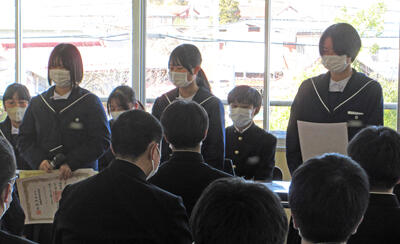 大会やコンクールで活躍し、入賞した生徒の表彰披露を行いました。