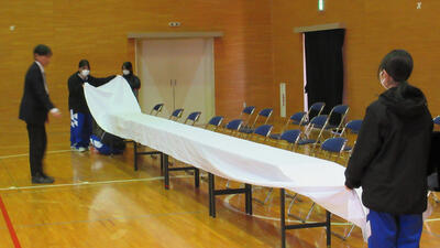 1・2年生で協力し、卒業式式場の準備も終わりました。