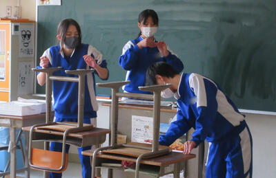 卒業式本番まで、あと2週間あまり。着々と準備が進んでいます。3年生の後姿を見て、在校生もがんばろうと努力しています。