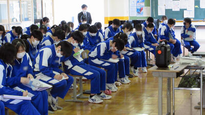 震災の教訓を忘れず、命の大切さや人とのつながり、支え合うことの大切さなどを改めて考えるため、合同道徳の授業を実施しました。今回は3名の教員が、それぞれの立場から震災当時の体験談を語りました。また、外部からは永野様をお迎えして震災にまつわるお話をいただきました。