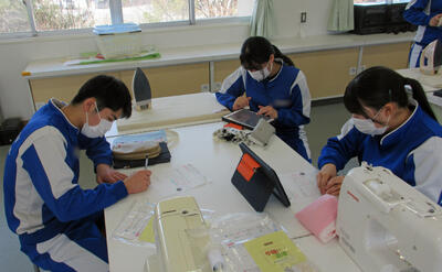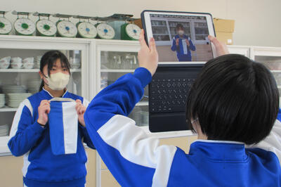 2年家庭科では、タブレットを使って、家の間取りを設計しています。